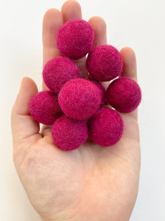 Raspberry - 2.5 cm Felt Pom Pom Balls