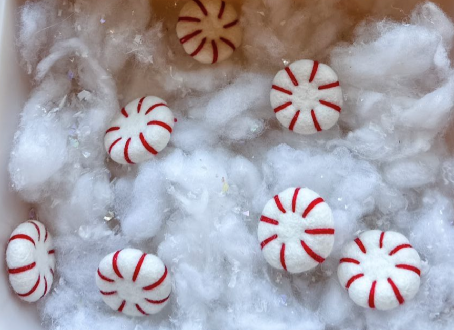 Decorate for winter with these adorable needle felted wool peppermint patties! Not just for Christmas trees, these candies can decorate tiered trays, floral sticks, knobs, table centerpieces, mantels or windows all winter long! Great for Christmas gifts!!!
