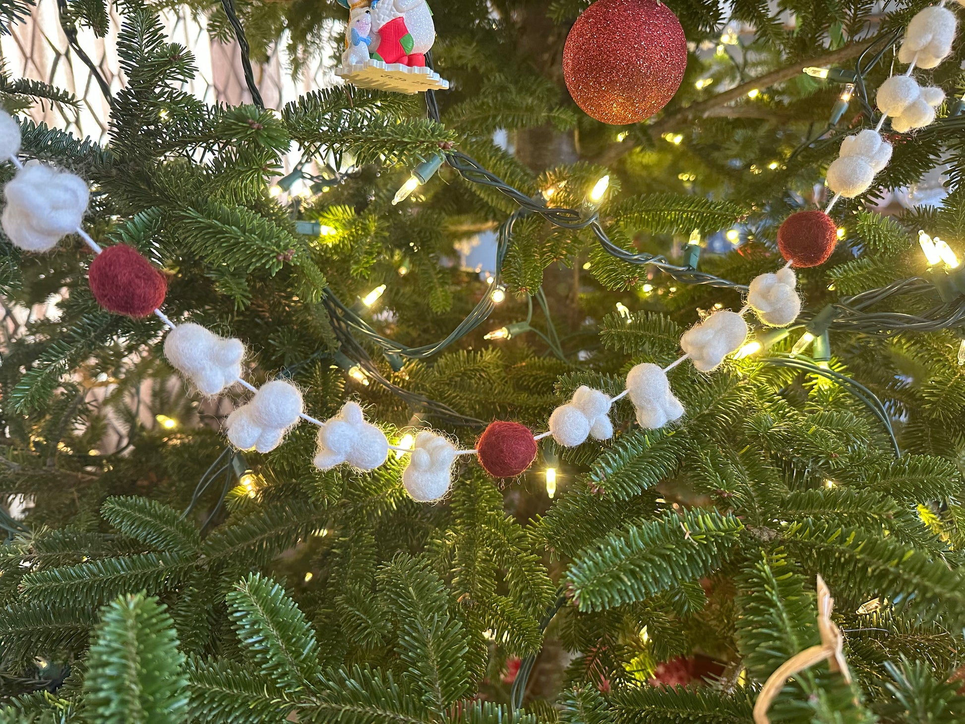Wool Jamboree popcorn garland is bright and perfect for holiday decorations, fireplace decor or Christmas tree trimming! You can hang it on your mantel, wall, window, or doors!