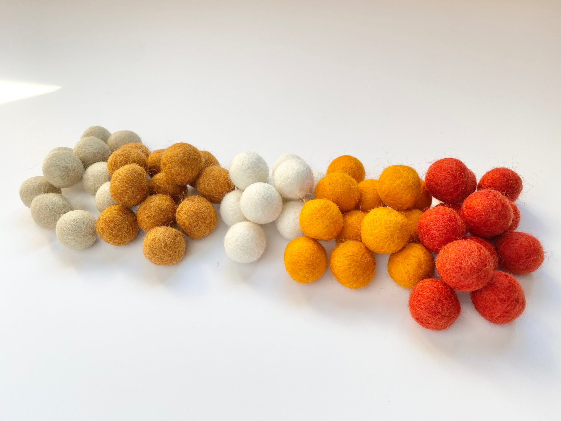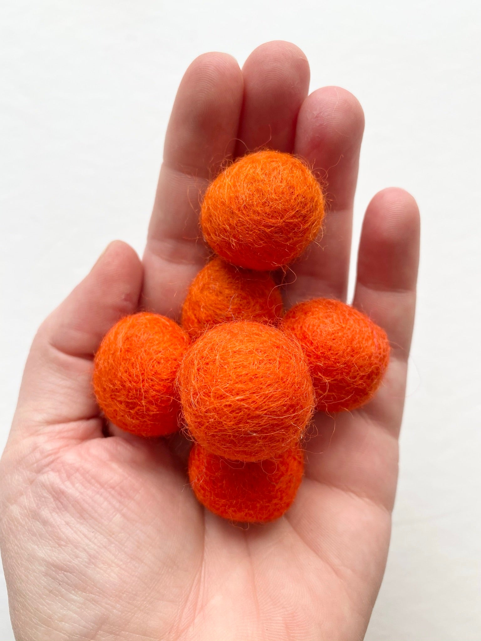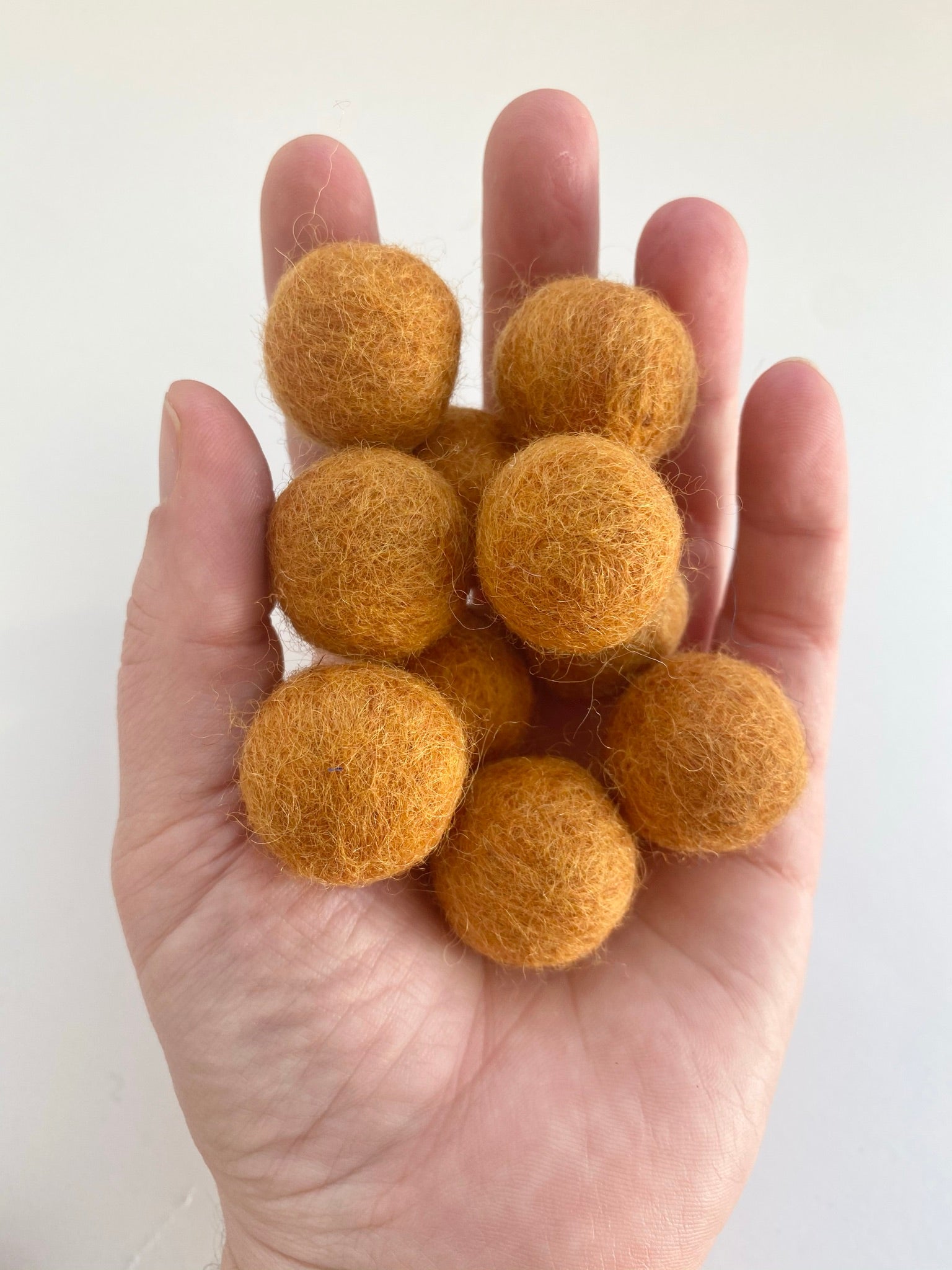 Sets of hand-felted, solid wool felt balls. Great for crafting and DIY decor! Each of the balls is about 2.5 cm (about an 1 inch) in diameter, though they may vary a small amount because they are hand felted.