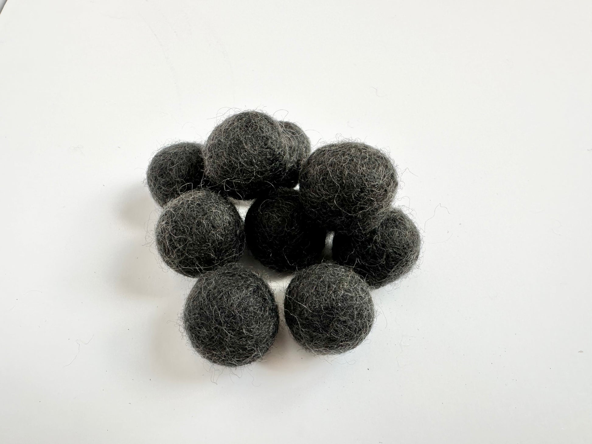 Sets of hand-felted, solid wool felt balls in Charcoal.