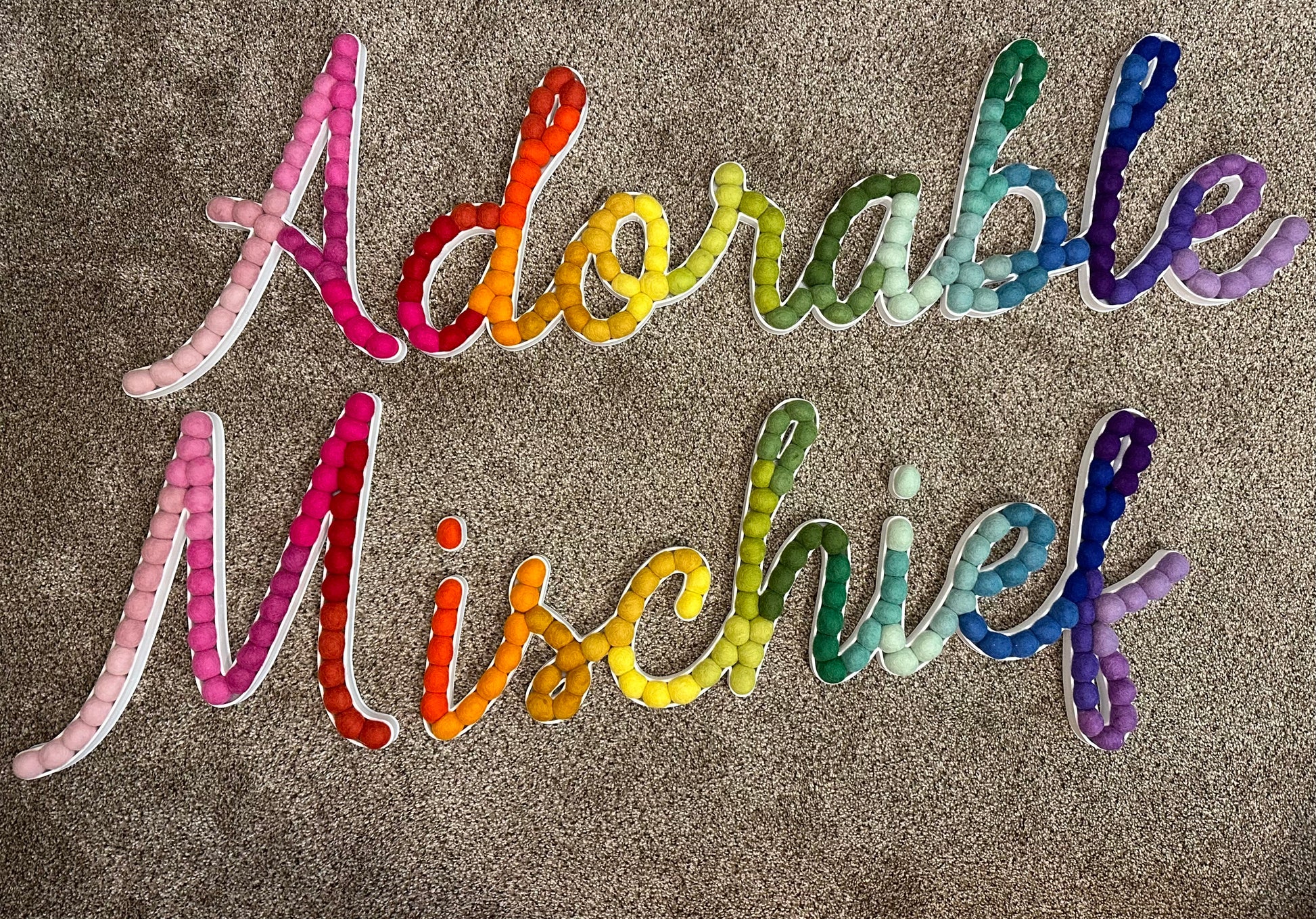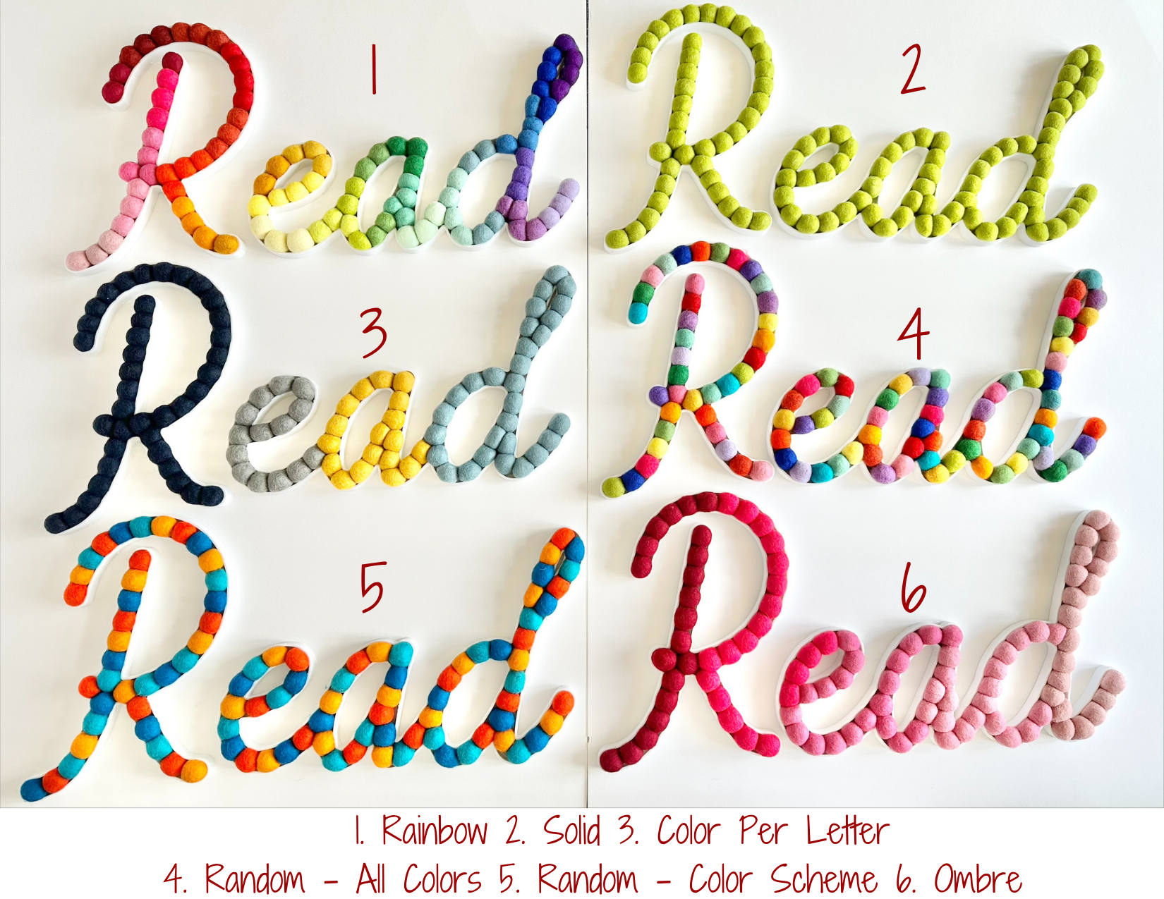 NOTE------- If you are customizing the pattern (meaning anything from the pattern chart that is not exactly as shown), I will send a photo of your requested pattern and colors within 1-4 BUSINESS days of your order. Please be watching your emails :) We can make minor edits to the letters at that time, in case you want to swap a color or adjust placement of a few of the felt balls. If you are not customizing, such as doing the Rainbow exactly as show, no photo will be sent.