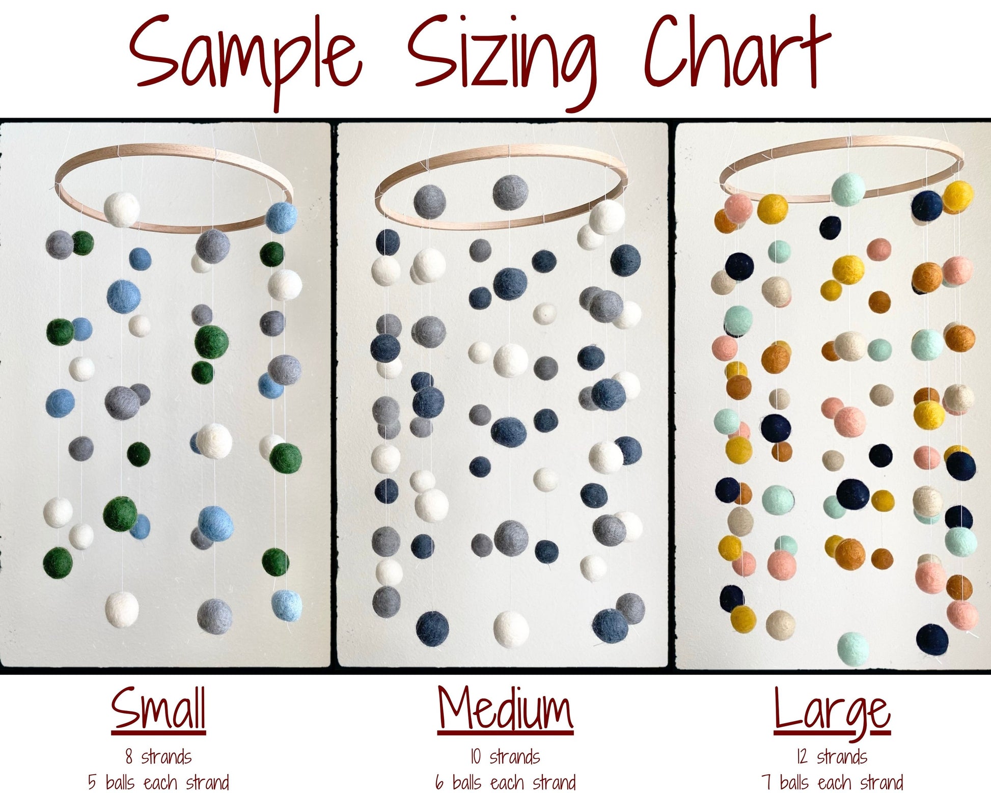 Wool Jamboree felt ball ceiling mobiles are a sweet finishing touch to a child's room or baby’s nursery. And now, YOU CAN MAKE IT YOURSELF! If you want to DIY a custom colored mobile, choose the size you'd like in the drop down menu. Details of the size are below and examples for what the finished product will look like in terms of strands/number of felt balls/length of strands, is found in the photos.