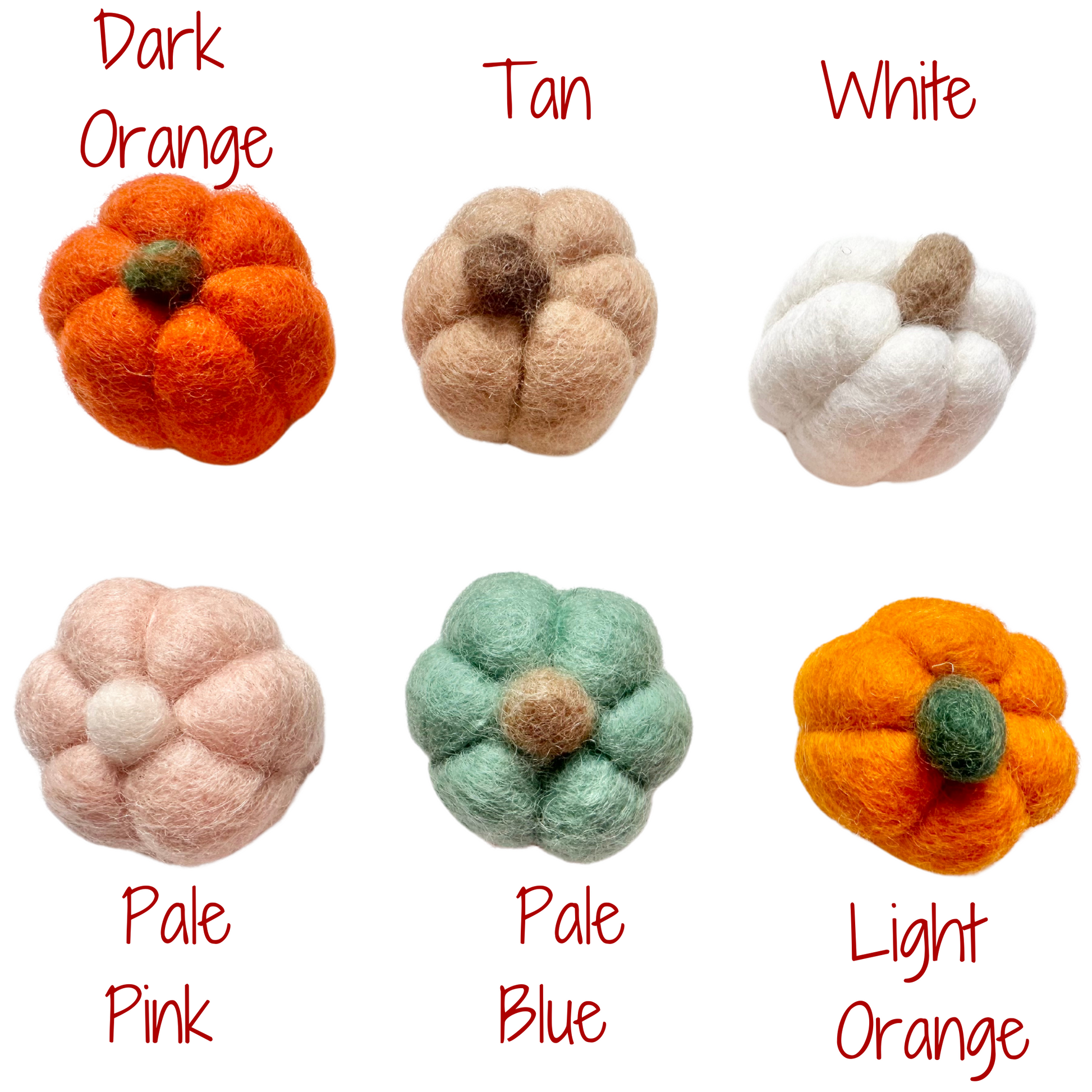 If you want measurements, please see the item's individual listings in my shop by following this link. Listing them all here isn't possible, I don't have enough room ;) https://www.wooljamboree.com/collections/wool-toys
