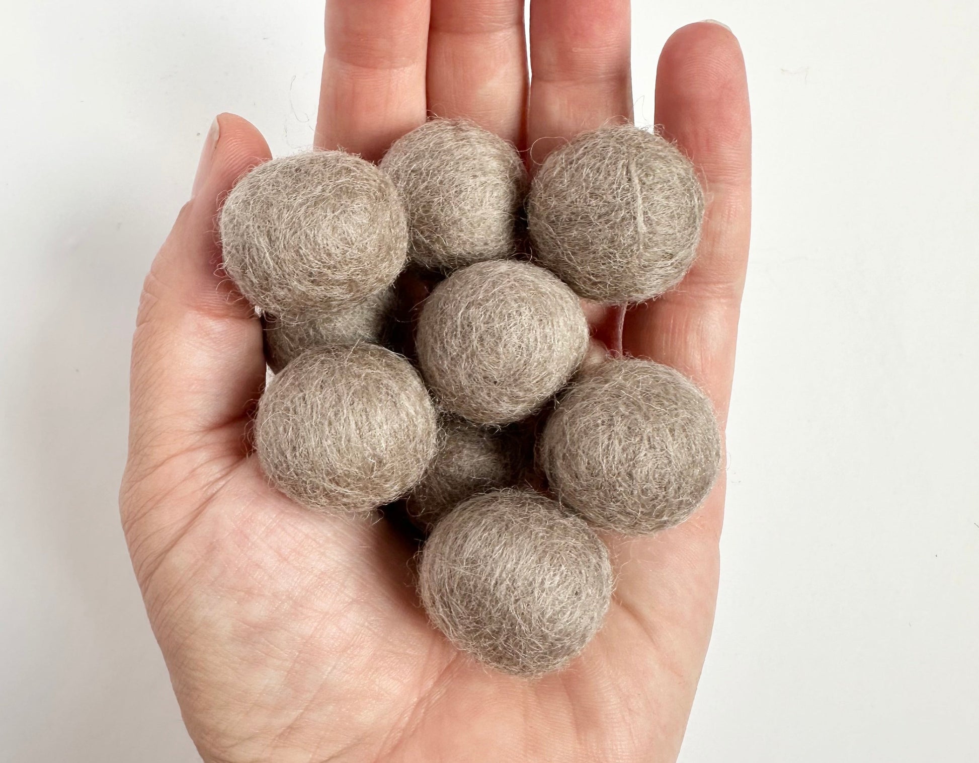 Sets of hand-felted, solid wool felt balls in Greige.