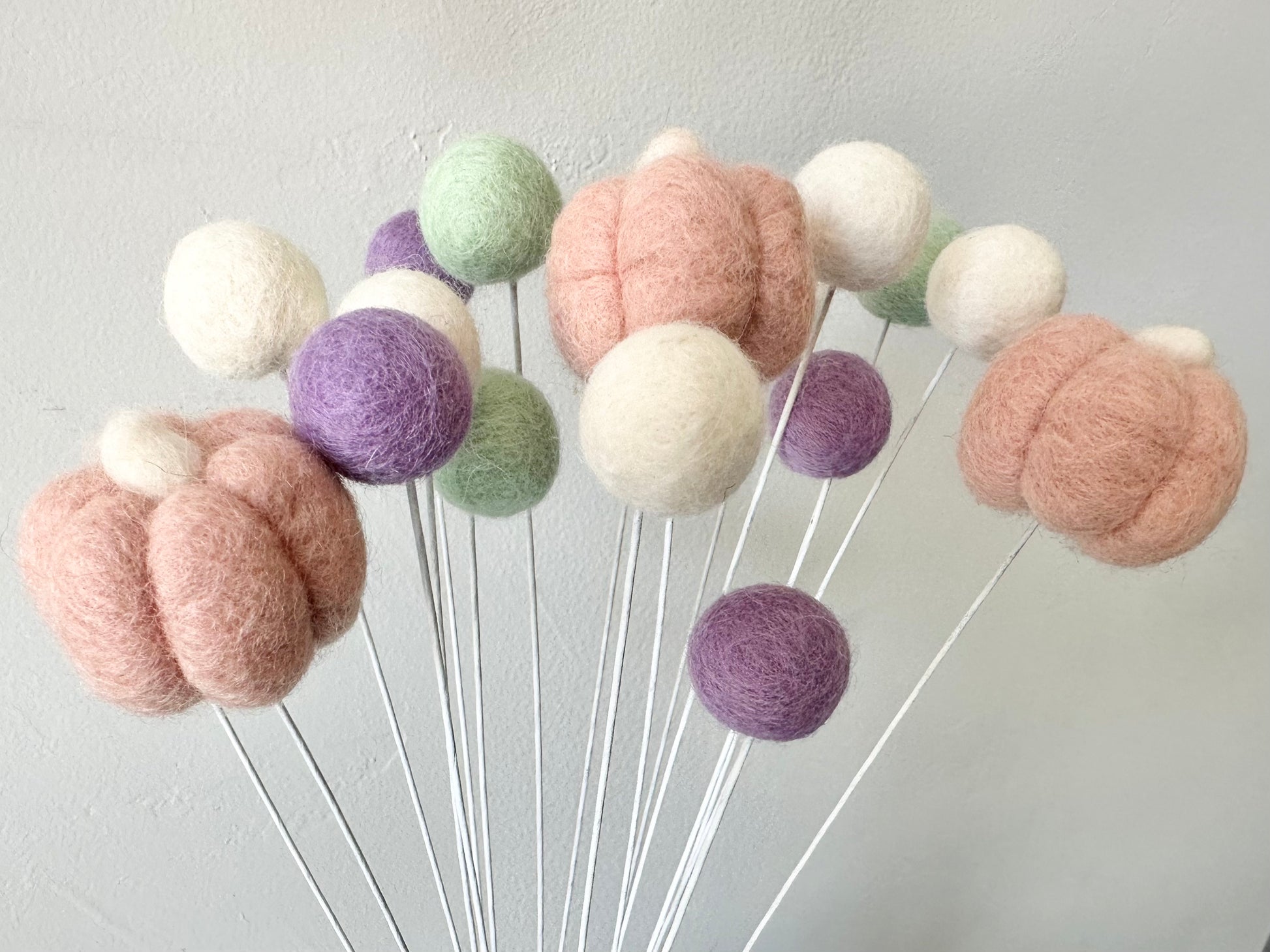 10 stems: 2 pumpkins and 8 felt balls