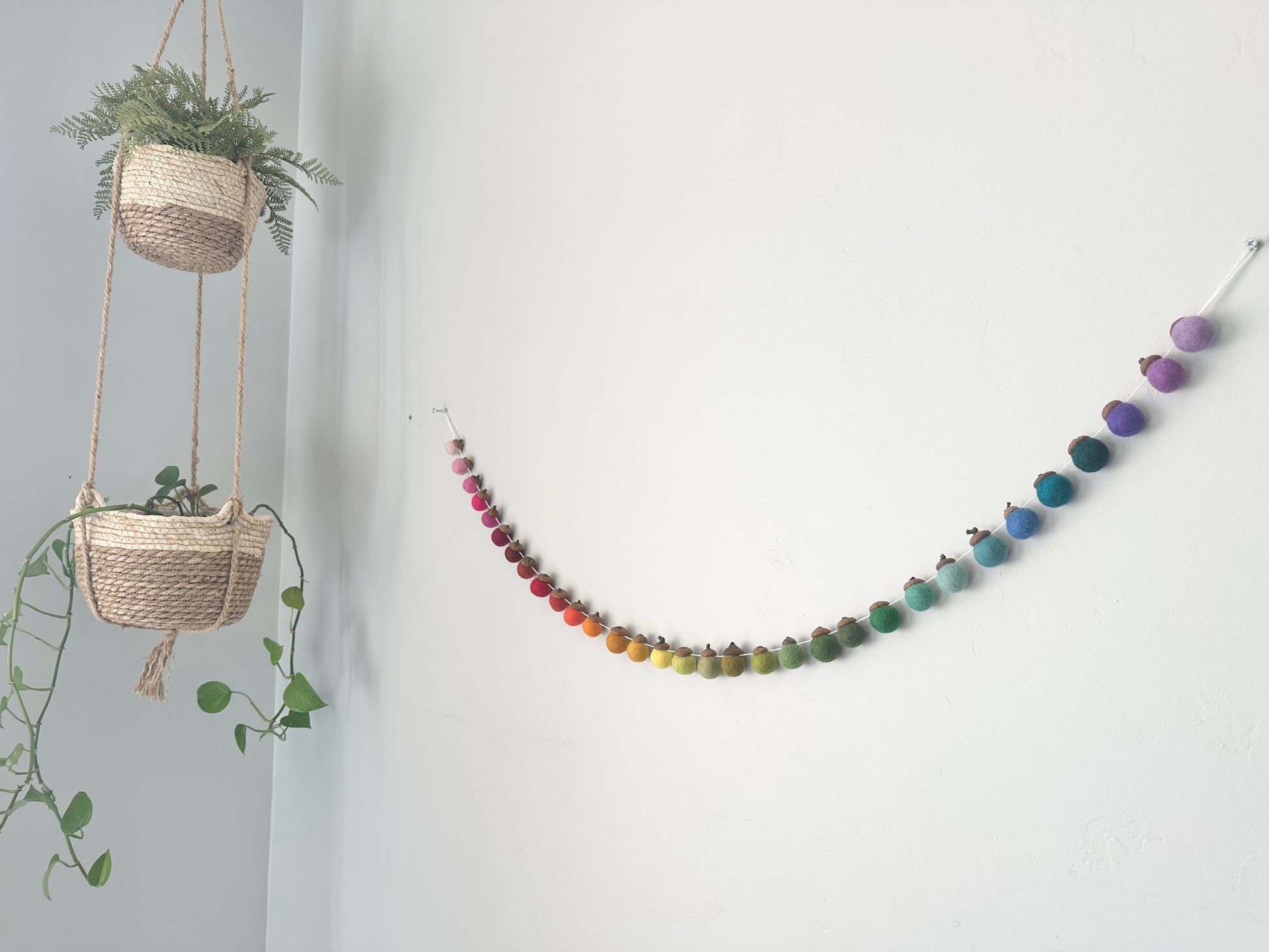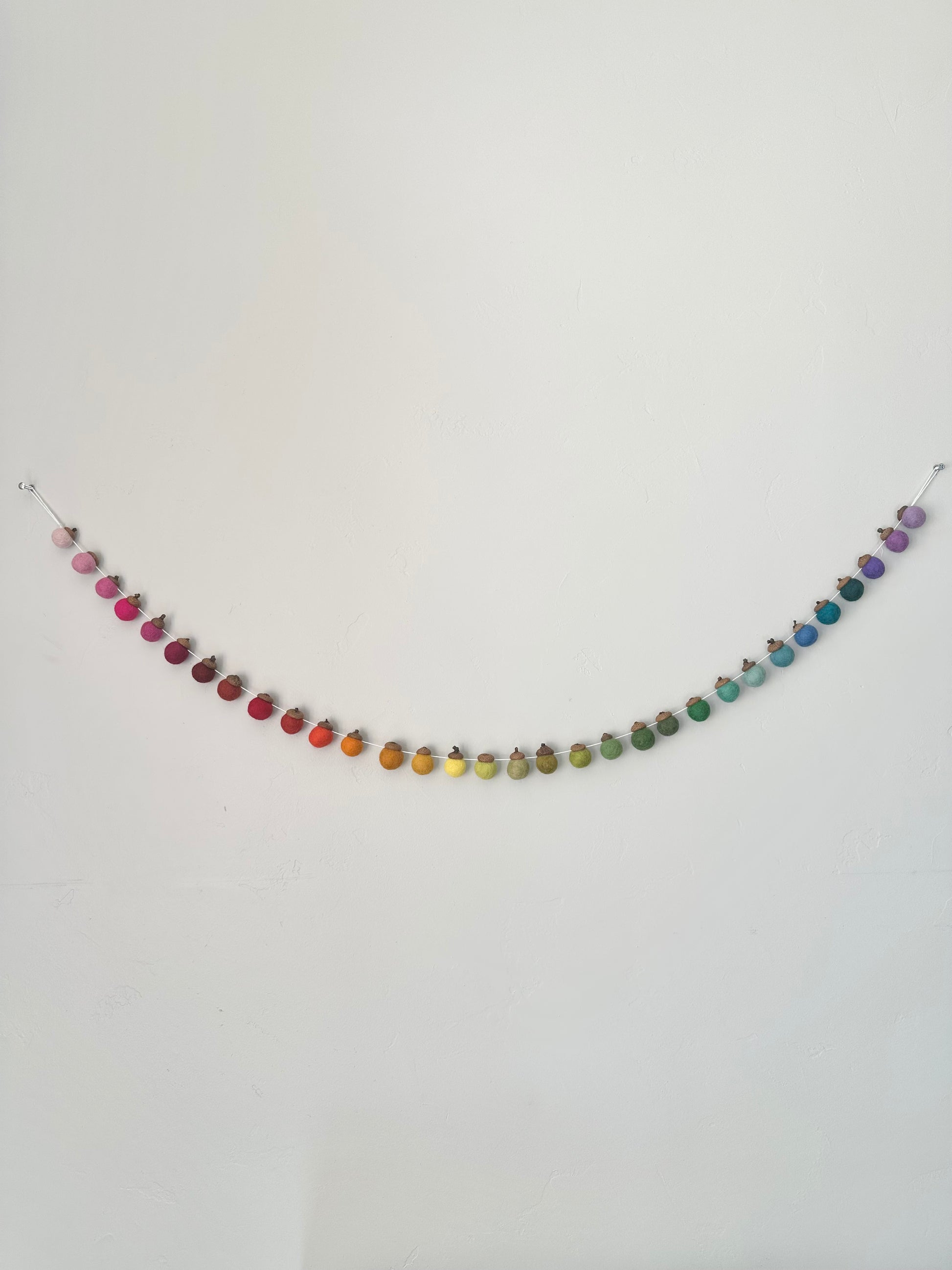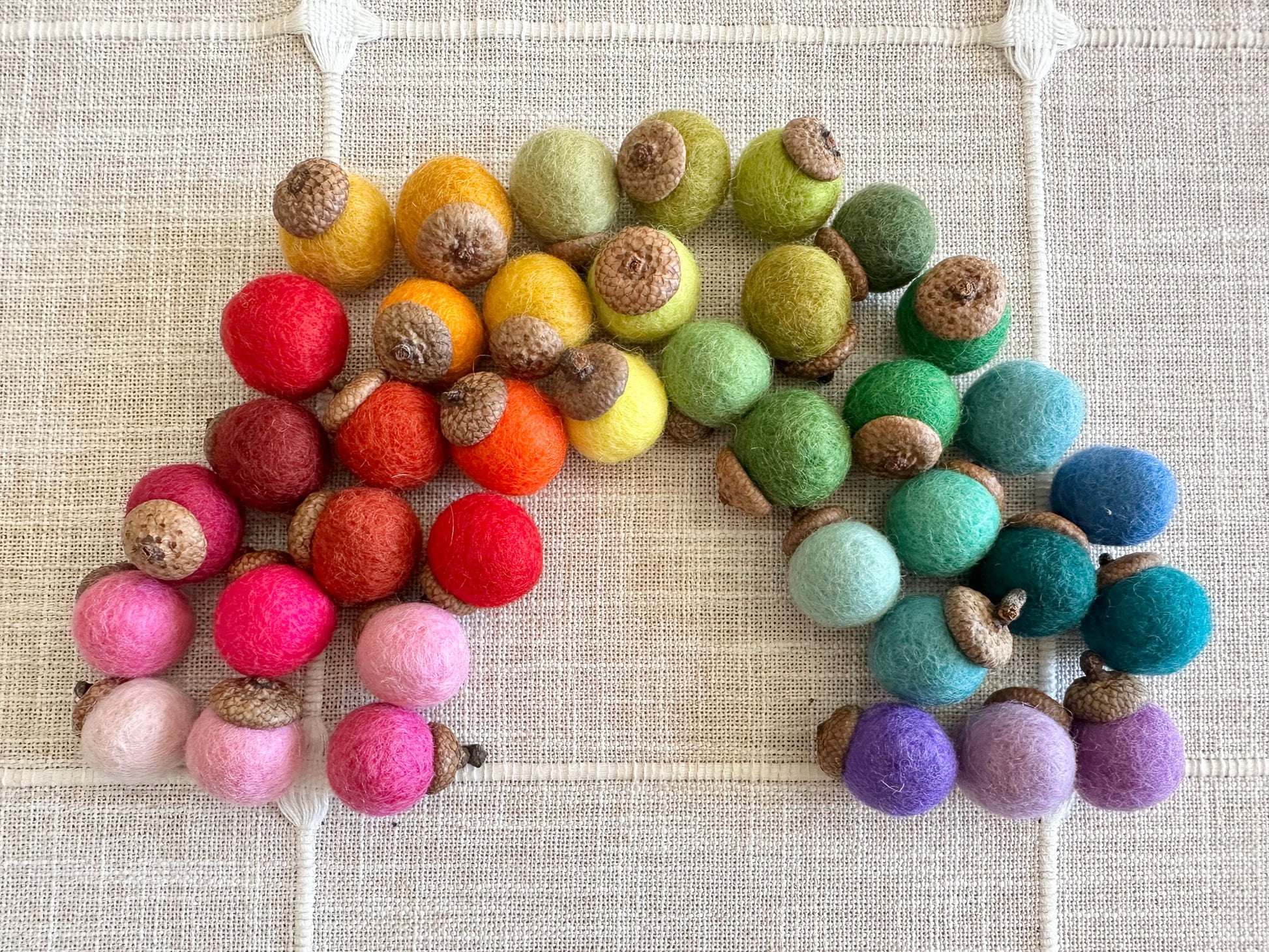 Colors: exact colors are based on the number of acorns ordered. It flows from pinks, reds, oranges, yellows, greens, blues, to purples. If you want to pick the colors yourself, see the color chart photo and let me know in the "Personalization" section of this listing. All acorns are made with 2.5cm felt balls and a REAL acorn cap. Have a question or custom request? Email me, Amy, at info@wooljamboree.com.