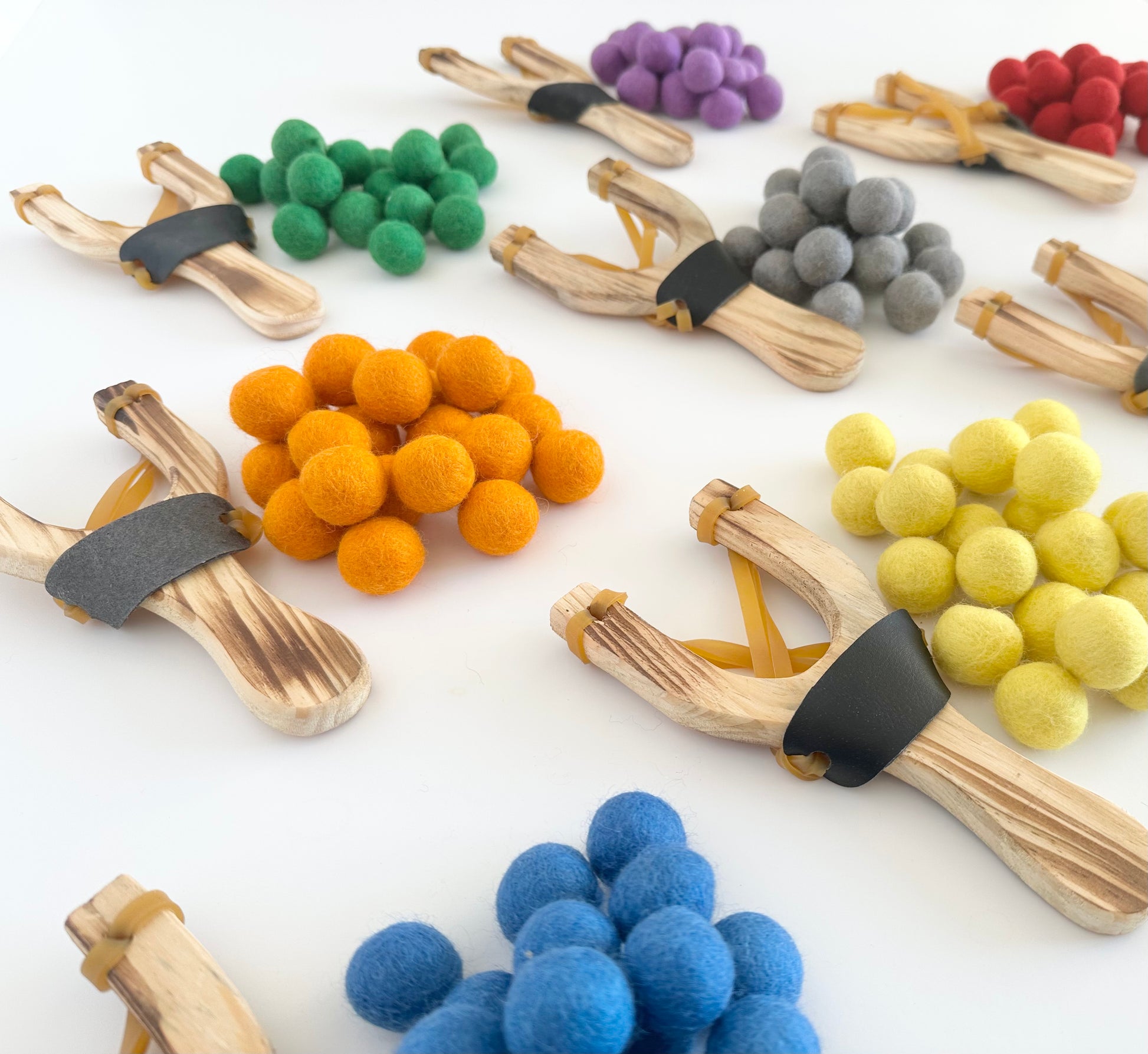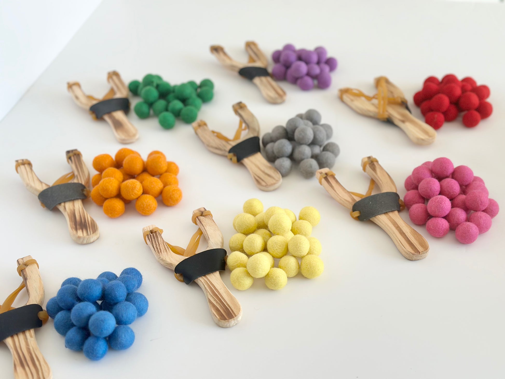 Everyone loves beaming someone with a slingshot!!! This listing is for ONE wooden slingshot with 24 felt balls. They are perfect for high energy kids, especially for a family night or a kid's birthday party game. Great for pets too!