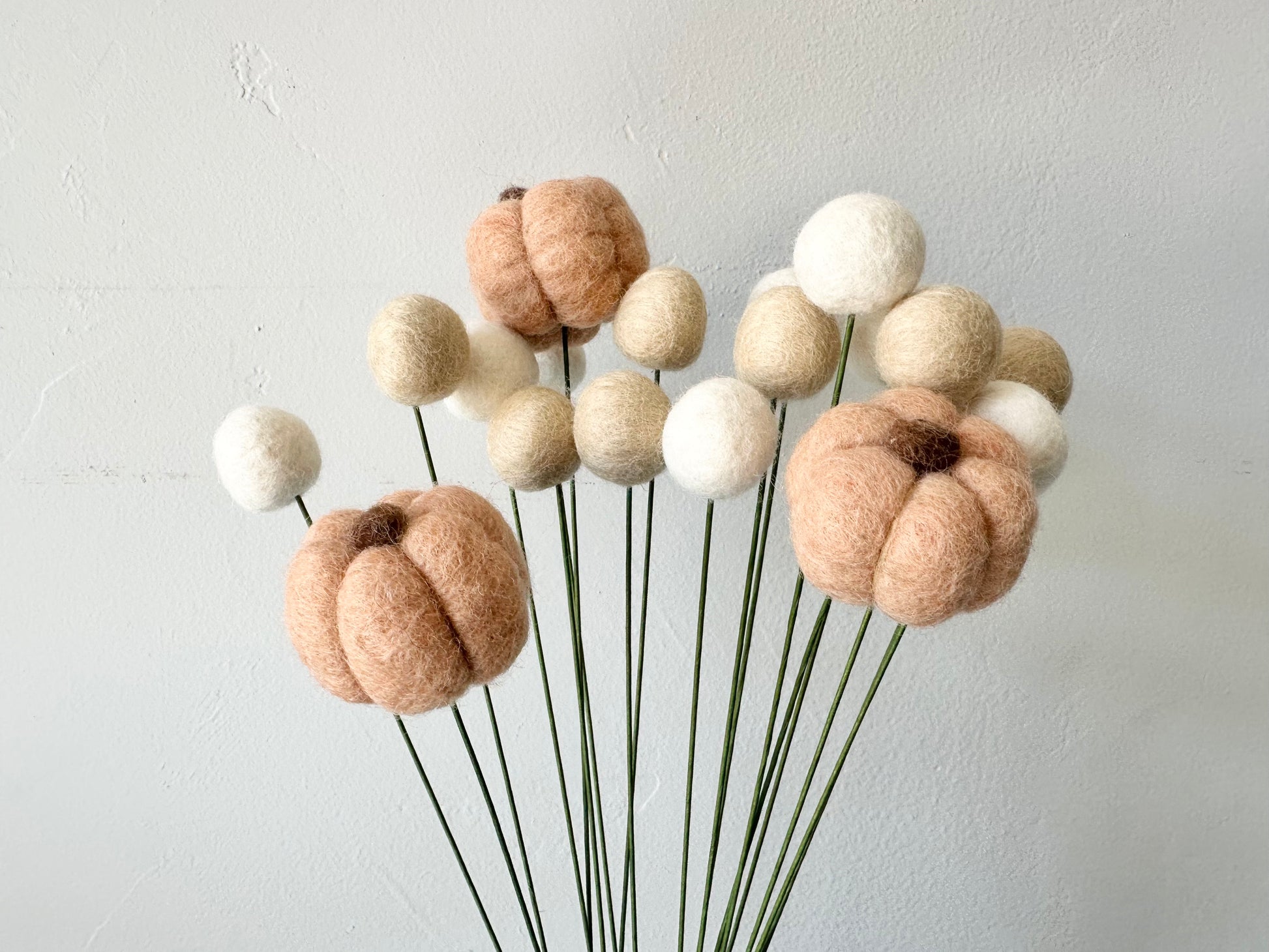 18 stems: 3 pumpkins and 15 felt balls