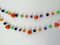 Made of 2.5 cm felt wool balls and solid wool pumpkins, strung on white cotton cord (or your choice of colored Bakers Twine if you place the FREE Bakers Twine listing in your cart as well). Balls and shapes on the garland are not knot tied, and can be slid around with gentle pressure to get the look you desire. They will stay where you want them on the cotton cord.